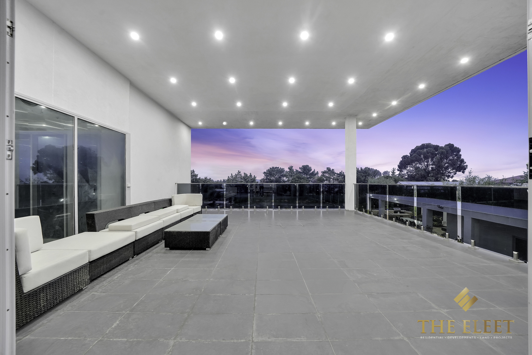 Outside, the expansive outdoor terrace offers panoramic views of the surrounding area—perfect for evenings spent entertaining or relaxing under the stars.